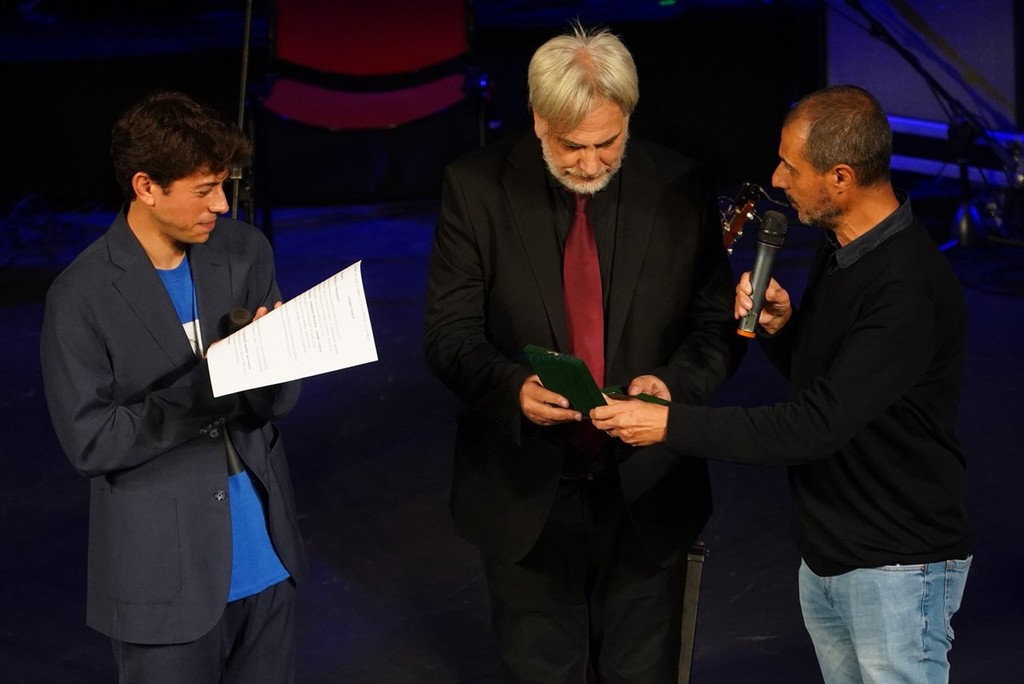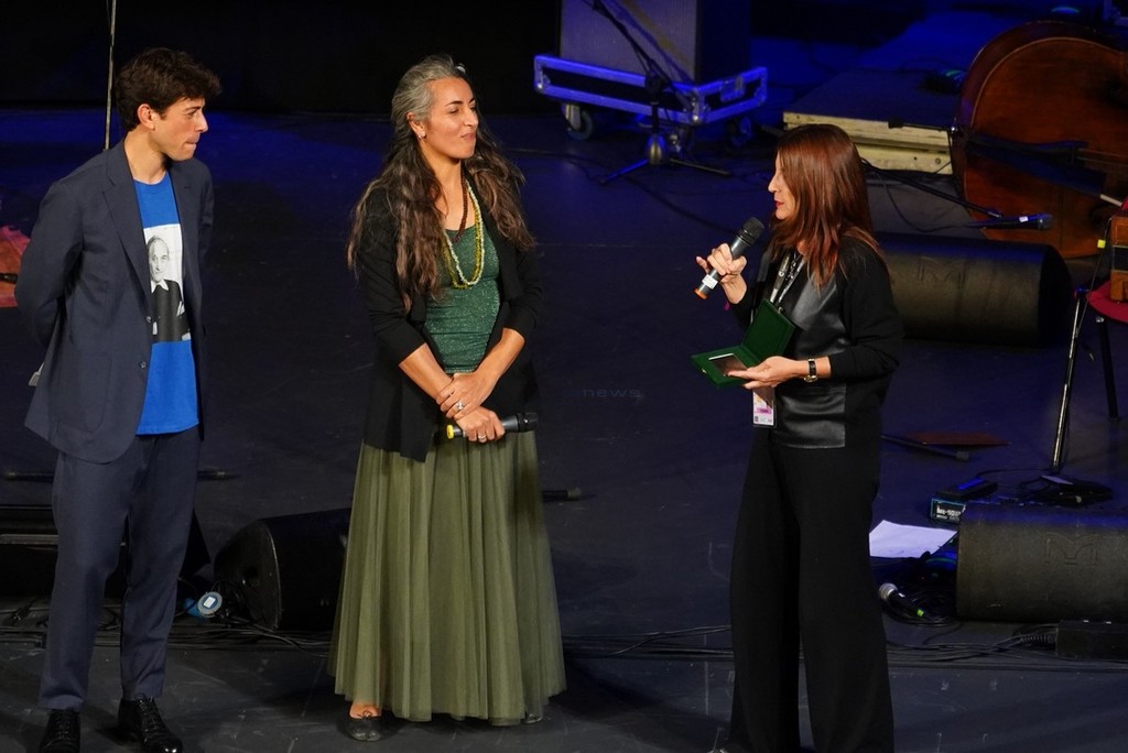 E poi il ricordo di Sergio Staino nel live del figlio Michele insieme a Fabrizio Mocata e Gianni Coscia, il teatro-canzone di Francesco Tricarico, e le targhe consegnate nelle mani di Setak (migliore album in dialetto con il suo “Assamanù” in abruzzese), Elisa Ridolfi (migliore album opera prima con “Curami l’anima”) e Simona Molinari (migliore album di interprete con “Hasta sempre Mercedes”) nel suo dialogo tra Mercedes Sosa e Maradona. Anche qui, da Sanremo al mondo.