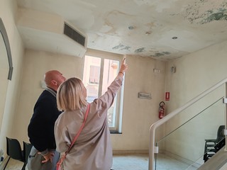 L'area compromessa, per sicurezza, è stata al momento interdetta. "Abbiamo richiesto un sopralluogo urgente all'ufficio tecnico affinché si possa comprendere meglio l'entità del problema" - dice l'assessore Calcopietro dopo aver verificato personalmente il danno creato dalle infiltrazioni insieme all'assessore al Bilancio, ai Tributi, all'Urbanistica, all'edilizia privata, Difesa del suolo, Demanio, Patrimonio, Viabilità, mare Adriano Catalano.