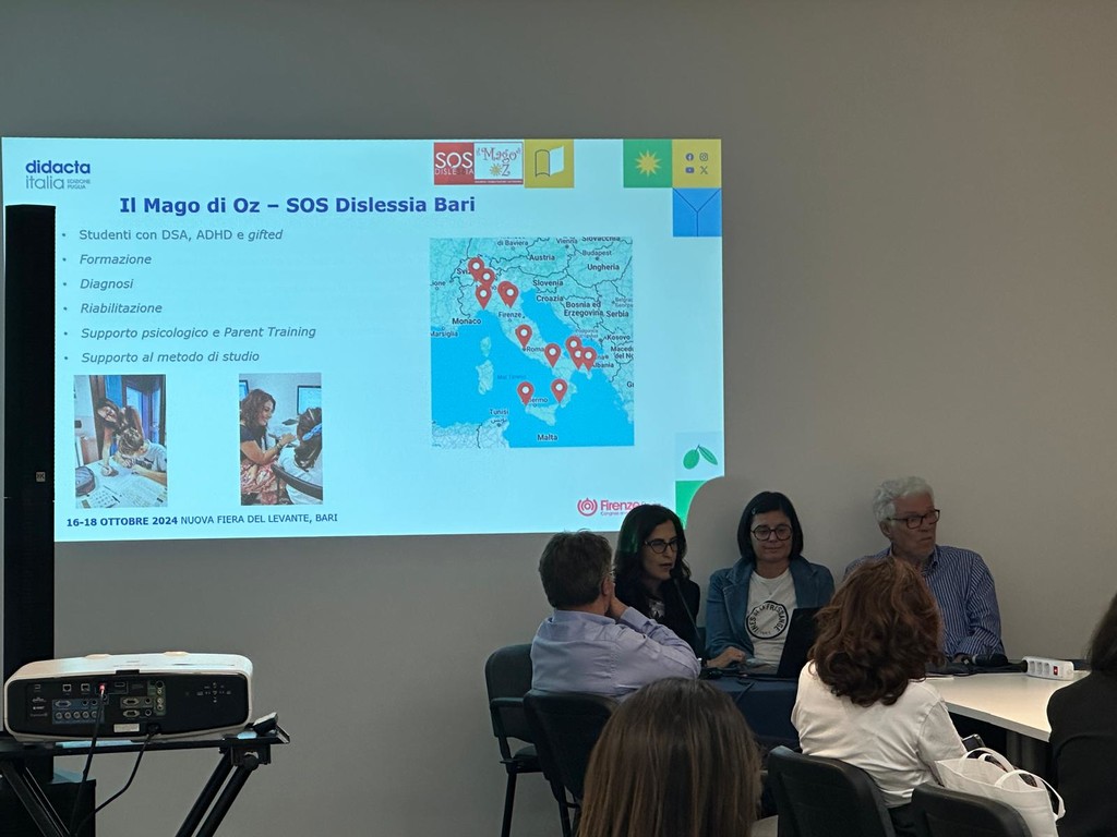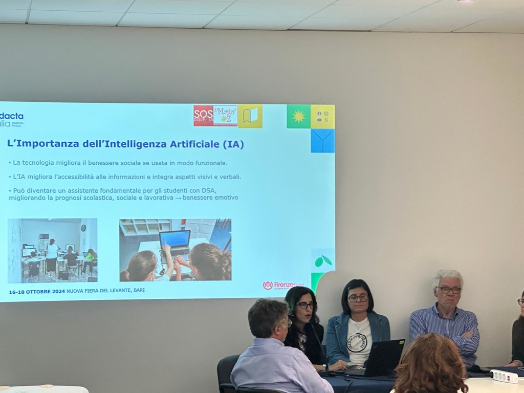 Tra questi anche i referenti clinici, il Prof. Stella e il Dr.Messina, e parte del Comitato Scientifico della rete Nazionale SOS Dislessia, intervenuti per condurre un workshop sulle nuove prospettive dell’uso dell’AI nei disturbi dell’apprendimento, mirato a riflettere e condividere sempre buone prassi che la rete di professionisti continua a seminare per studenti con questo tipo di difficoltà. Il dr. Sergio Messina ha presentato un contributo molto interessante relativo all’evoluzione della lettura dai primordi all’introduzione dell’AI; la dr.ssa Jennifer Francioli, referente clinico del Centro SOS Dislessia Domodossola-Verbania, ha presentato i risultati relativi ad una ricerca sui correlati emotivi, positivi e negativi, associati all’introduzione di strumenti tecnologici e la fruizione dell’AI da parte degli studenti con DSA e BES; la dr.ssa Claudia Liuzzi, Logopedista specializzata della rete SOS Dislessia, ha presentato un caso clinico per riflettere in merito a quanto tecnologie e AI possono essere uno strumento indispensabile per il successo scolastico degli studenti ,ed infine il prof. Giacomo Stella, responsabile scientifico della rete, si è occupato di introdurre il tema dell’AI come un alleato degli studenti con difficoltà. Tutti i relatori sono stati coordinati dalla moderatrice Dr.ssa Sara Bianco, referente clinica del Centro SOS Dislessia di Bari.