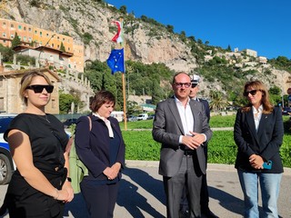 "Qui abbiamo delle progettualità" - fa sapere il sindaco Flavio Di Muro - "Noi vorremo creare una vera e propria piazza, che vorremo chiamare 'Piazza Italia' per fare bella figura nei confronti dei francesi. Soffriamo da tempo di un paragone anche dal punto di vista di arredo urbano tra Italia e Francia. Questa è una zona di Anas su cui cerchiamo di intervenire per sfalciare l'erba e sistemare un po' di strutture ma facciamo sempre molta fatica. C'è un progetto di Anas che è nelle fasi finali che prevede anche un po' di servizi turistici per la piazza. Su questo mi aspetto un contributo di Anas a livello nazionale per creare un bel biglietto da visita per tutta l'Italia. Da qui parte un'altra progettualità che abbiamo definito 'Pista ciclabile internazionale', che unirà la pista ciclabile di Mentone fino al Forte dell'Annunziata passando dietro alla galleria, dentro alla pineta dei Balzi Rossi, dentro a proprietà private, un po' sulla statale, un po' sul mare, un po' a sbalzo fino a Ventimiglia Alta. E' un modo anche per avvicinare all'Italia il flusso turistico che viene a Mentone e arricchire così il nostro territorio. E' un progetto ambizioso di difficile realizzazione a causa della conformazione di questa parte di Liguria ma, una volta realizzato, sarebbe la pista ciclabile più bella d'Europa e a carattere internazionale. Ci vorremo candidare a novembre, nel prossimo bando di progetti Alcotra, quindi Intereg, con Regione Liguria capofila e comune di Ventimiglia partner per fare Edumob 3 per realizzare questa parte di ciclabile".