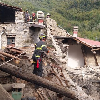 Pigna: crolla una casa disabitata in frazione Buggio e provoca la fuga di gas da un bombolone vicino, tre evacuati (Foto)