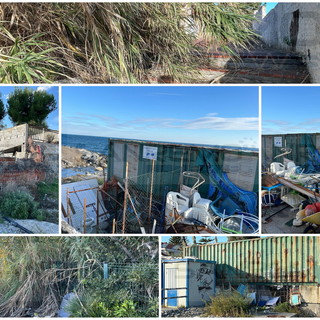 Sanremo: degrado e rifiuti abbandonati alla foce del torrente San Martino, e c'è anche un... water (Foto e Video)