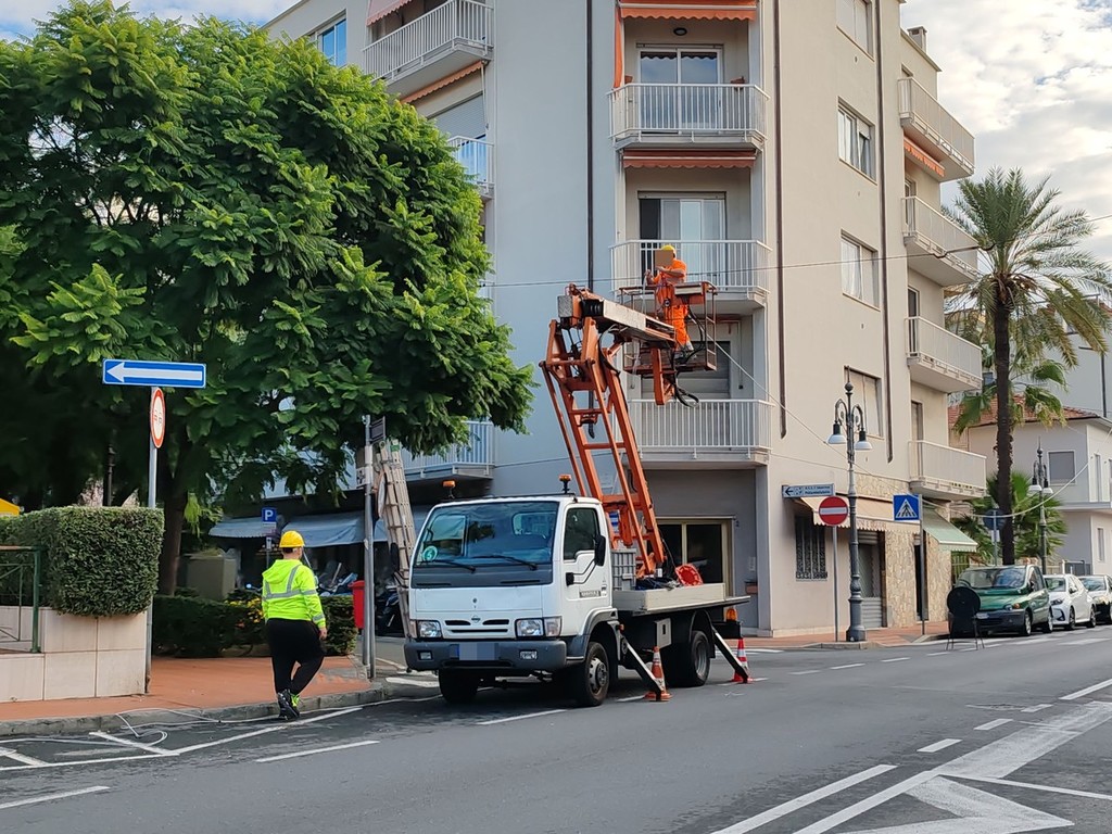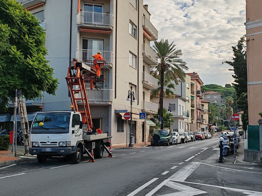 Bordighera si prepara alle festività natalizie. E' iniziata questa mattina l'installazione delle luminarie che abbelliranno e illumineranno le vie della città durante il periodo natalizio.
