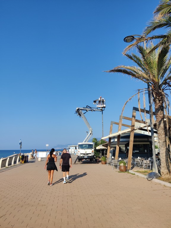 “Gli elettricisti comunali stanno intervenendo sul lato ovest della passeggiata mare per installare 27 nuovi corpi illuminanti led a risparmio energetico; sostituiranno quelli precedenti che nel tempo si erano usurati o rotti e che, non essendo tra l’altro più impermeabili alle infiltrazioni d’acqua, provocavano malfunzionamenti.” annuncia l’Assessore. “Sempre sul lungomare, è in corso la riverniciatura delle panchine nel tratto non ancora oggetto di restyling”.