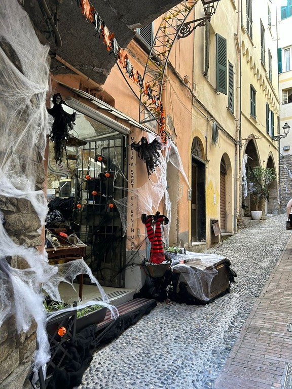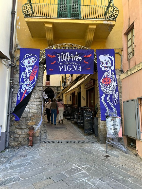 Questa sera, la storica Pigna di Sanremo si trasformerà in un vero e proprio teatro a cielo aperto per festeggiare Halloween. Le vie del centro e i suoi caratteristici portici sono stati addobbati con cura per immergere residenti e visitatori in un’atmosfera suggestiva e misteriosa. Scheletri, ragnatele e zucche sono stati posizionati in ogni angolo, creando un ambiente perfettamente in linea con la celebrazione della notte più spaventosa dell'anno.