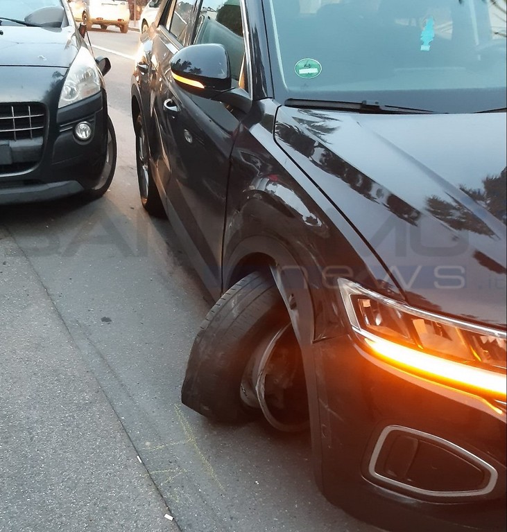 Rocambolesco incidente stradale oggi pomeriggio in corso Cavallotti a Sanremo. Una Volkswagen proveniente da San Martino ha perso il controllo, schiantandosi contro una Peugeot in sosta sul margine della strada.
