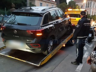 Rocambolesco incidente stradale oggi pomeriggio in corso Cavallotti a Sanremo. Una Volkswagen proveniente da San Martino ha perso il controllo, schiantandosi contro una Peugeot in sosta sul margine della strada.