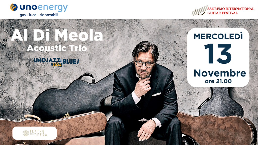 Appuntamento imperdibile mercoledì 13 novembre, alle ore 21.00 presso il Teatro dell'Opera del Casinò di Sanremo con uno vero e proprio mito della chitarra: Al Di Meola. Il leggendario chitarrista si esibirà con Peo Alfonsi alla chitarra e Sergio Martinez alle percussioni.