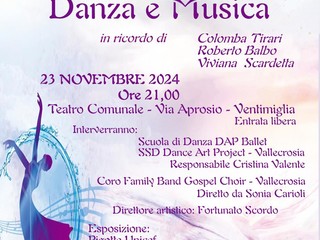Una serata di danza e musica in ricordo di Colomba Tirari, Roberto Balbo, Viviana Scardetta verrà proposta sabato 23 novembre alle 21 al teatro comunale di Ventimiglia.