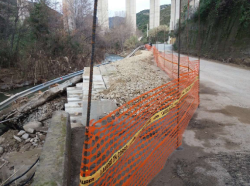 La piena del torrente aveva eroso l’argine, con conseguenti danni alla strada che aveva subìto lo smottamento di parte della carreggiata. In urgenza, erano stati attuati alcuni primi interventi di sicurezza per scongiurare la chiusura della strada e consentirne la percorribilità a senso unico alternato.