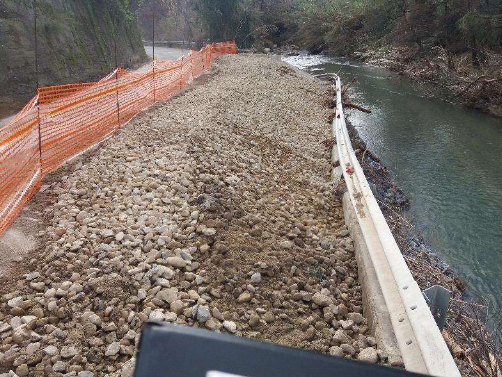 La piena del torrente aveva eroso l’argine, con conseguenti danni alla strada che aveva subìto lo smottamento di parte della carreggiata. In urgenza, erano stati attuati alcuni primi interventi di sicurezza per scongiurare la chiusura della strada e consentirne la percorribilità a senso unico alternato.