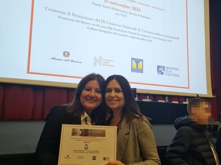 La cerimonia della premiazione si è svolta nel Teatro Mediterraneo della Mostra d’Oltremare di Napoli dove le docenti Roberta Masi e Francesca Grana hanno ricevuto il premio nazionale (medaglia d’oro) dalla dottoressa Mirella Stampa Baracco, presidente della Fondazione Napoli novantanove, e un messaggio del presidente della Repubblica Sergio Mattarella in cui ha espresso le sue congratulazioni ai vincitori di tutti gli ordini di scuola presenti alla cerimonia di premiazione del IX concorso nazionale “La scuola adotta un monumento”.