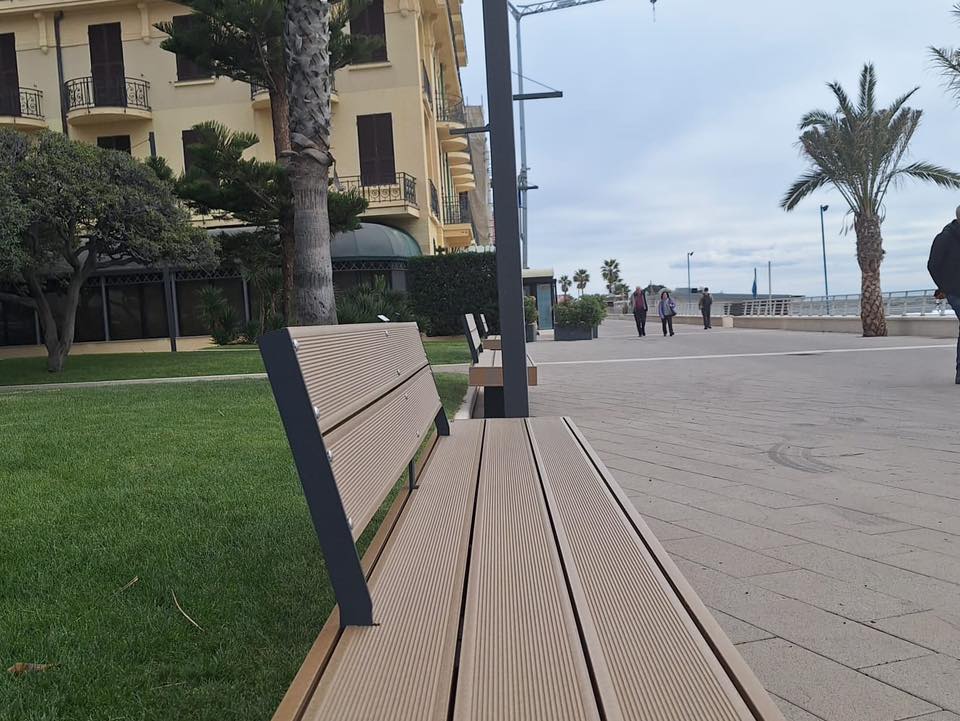 Installate sulla passeggiata a Bordighera le nuove panchine previste dal progetto di restyling del lungomare.