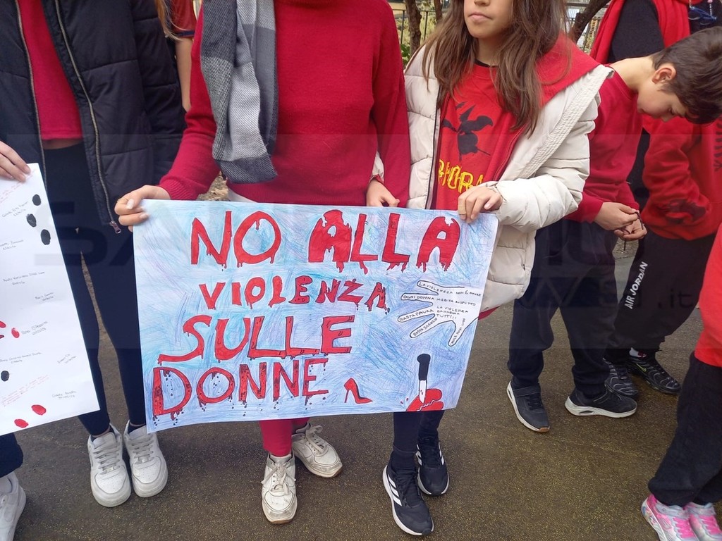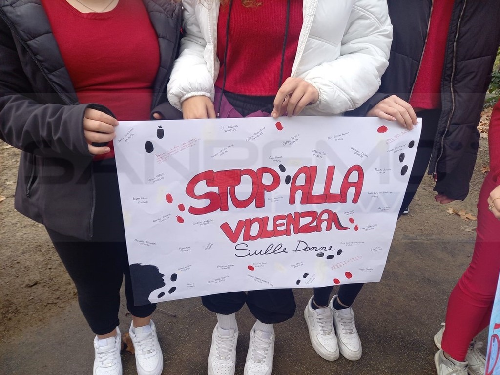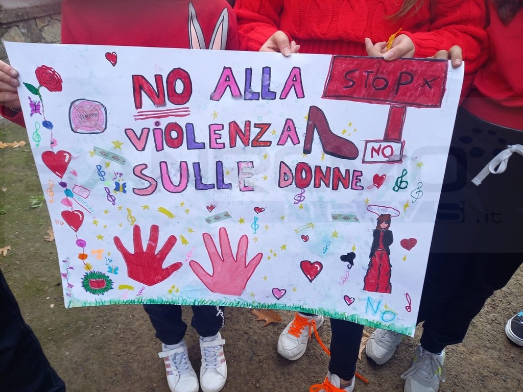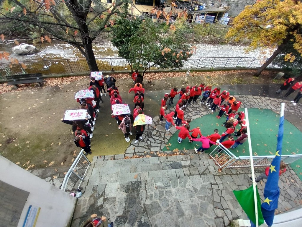 Dopo un minuto di silenzio gli alunni della Primaria e della Secondaria si sono disposti in modo da comporre la scritta ‘No’ alla violenza sulle donne. Erano presenti anche gli insegnanti che, la scorsa settimana, hanno dedicato diverse ore di educazione civica al tema. I ragazzi hanno visto video, esaminato statistiche, letto articoli di giornale e discusso in classe.