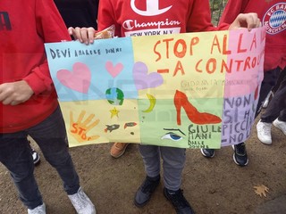 Quindi, divisi in piccoli gruppi, hanno progettato e prodotto dei poster. Anche nella scuola dell'infanzia è stato dedicato del tempo al tema della violenza in generale. Le insegnanti che hanno partecipato sono: Paola Garzia e Giuseppina Ielo per la scuola dell’infanzia; Nives Bianchi, Adriana Rossi, Maria Eugenia Stella, Emily Ciano, Sonia Cassiano e Daniela Manni per la Primaria; Eugenia Trippetta, Maria Teresa Massa, Natalia Perotti, Monica Signa, Carmine Esposito, Piietro De Filippis e Walter Materazzo per la Secondaria.