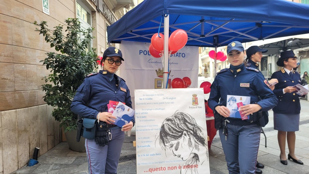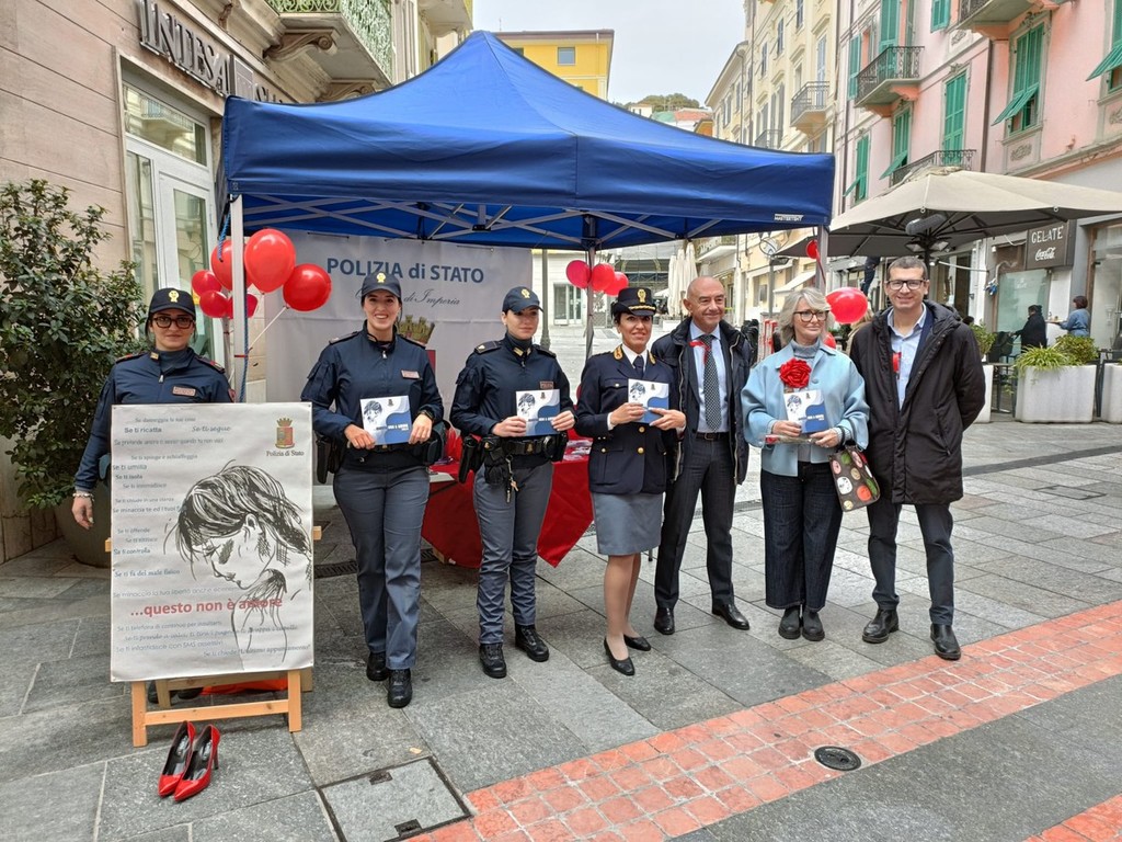 In occasione del 25 novembre, giornata contro la violenza sulle donne, il distaccamento sanremese della Polizia di Stato ha organizzato un banco informativo di fronte all'Ariston, per sensibilizzare e informare sulla problematica.