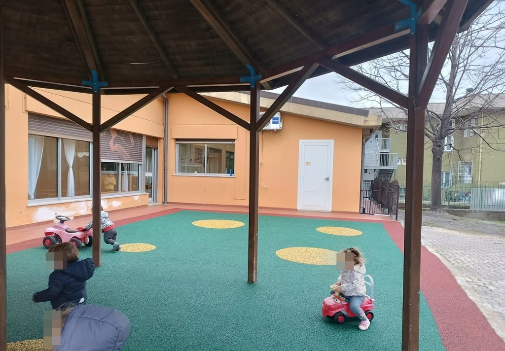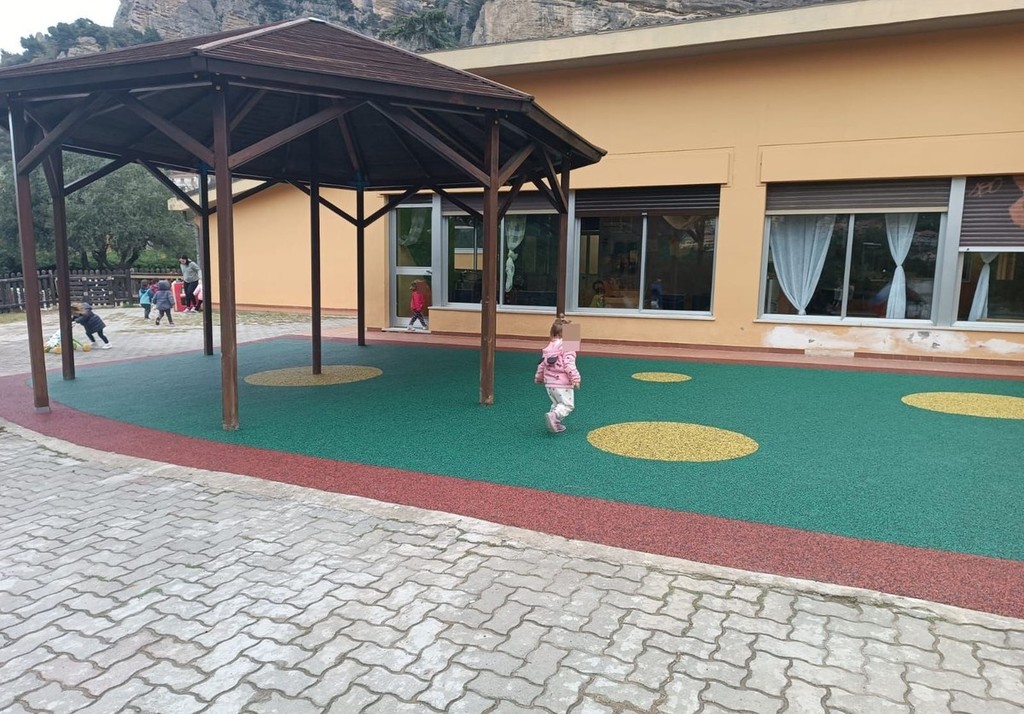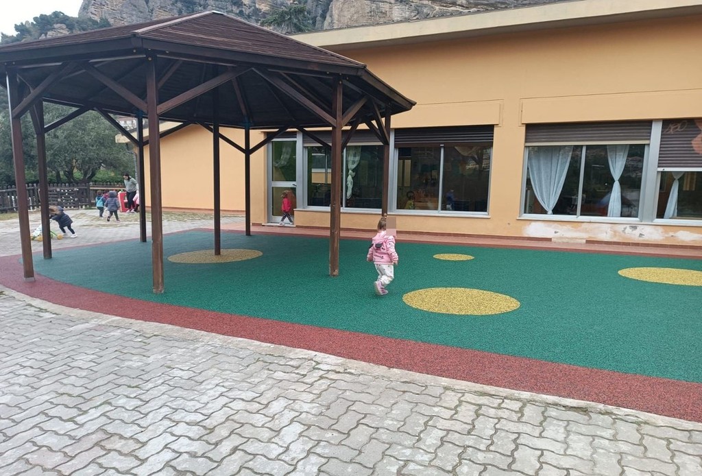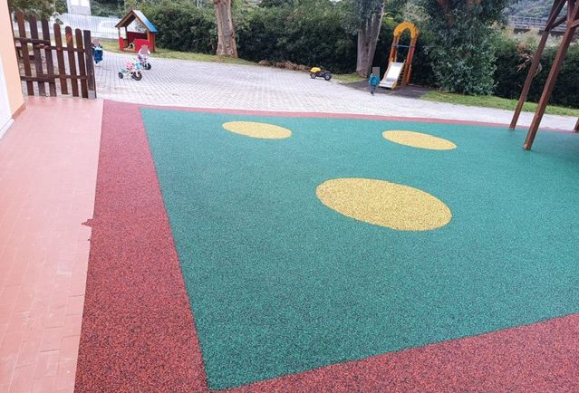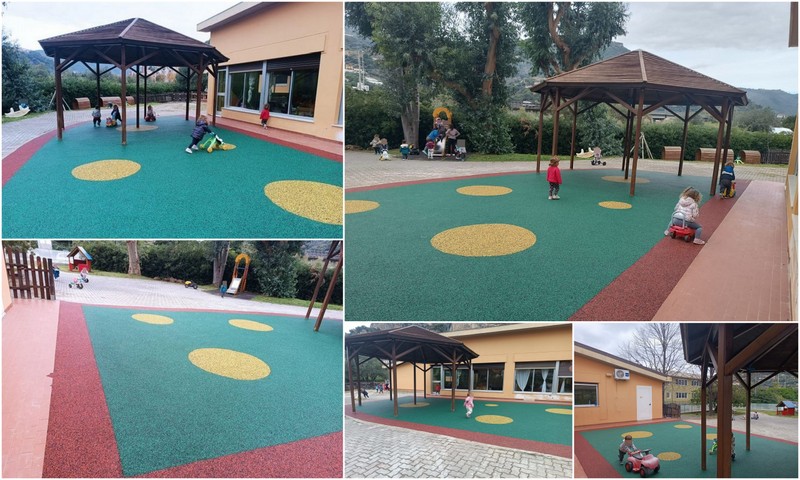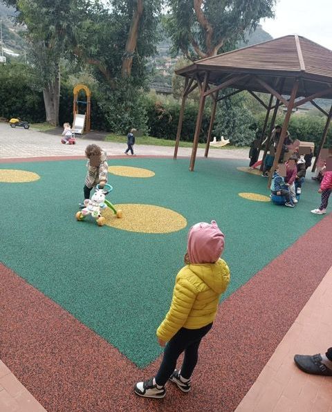 Nuovo tappeto antitrauma per il nido d'infanzia 'il Girasole' di Roverino, frazione di Ventimiglia. I bimbi, ieri, sono così potuti tornare a giocare nel cortile della scuola in totale sicurezza.