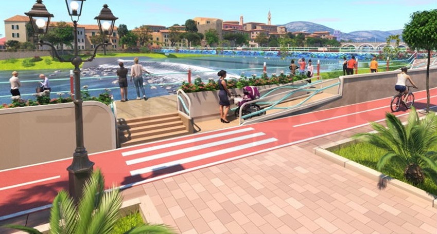 La realizzazione del sottopasso renderà attuabile la pista ciclabile, non possibile all’interno della passerella, troppo stretta, anche se originalmente prevista nel bando di concorso del Comune: “Soluzione che è permessa grazie alla presenza di un lago, che con le sue acque calme, garantirà, oltre la realizzazione del sottopasso, la realizzazione di una passerella, più bassa, di quella progettata dal Comune, un po' simile alla vecchia passerella, arricchita delle splendide ceramiche di Albisola, in armonia con il nostro paesaggio, e tradizioni liguri, e sarà possibile realizzarla, usufruendo di una maggiore tranquillità dal punto di vista idraulico”. L’idea è anche quella di realizzare una sorta di taxi acquatico: “Il Comune di Ventimiglia, in collaborazione con le nostre società, potrà realizzare una linea di trasporti urbana supplementare a quella gestita da Rt su strada, tramite navette, i cosiddetti batobus, da impiegare sul lago, con due fermate a Roverino e altrettante su lato di via Peglia e la Marina, al servizio dei ventimigliesi e delle frazioni. Questo servizio verrebbe ben apprezzato, dai cittadini, in quanto diminuirebbe di molto tra l’altro i tempi di percorrenza tra le varie aree, e creerebbe sviluppo presso la zona depressa di Peglia”.