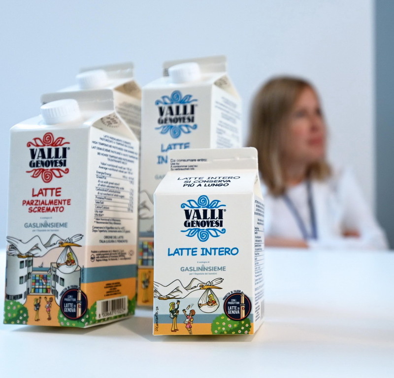 "Le nuove confezioni di latte - si spiega nel comunicato -, disegnate dal cartoonist e disegnatore Enzo Marciante, autore della grafica che decora le confezioni, sono già disponibili nei supermercati. Per ogni litro venduto, Valli Genovesi devolve cinque millesimi di euro all'Istituto G. Gaslini di Genova e alla Banca del Latte Umano Donato tramite Gaslininsieme. Il design delle confezioni presenta una cicogna che porta un fagotto pieno di biberon di latte materno, sullo sfondo della riconoscibile silhouette dell’Istituto Gaslini. Un’immagine che trasmette tenerezza e speranza. È difficile non sorridere e altrettanto interessante scoprire come il latte Valli Genovesi, storico marchio ligure, si presenti ai suoi clienti con questa colorata veste, che racconta un’importante iniziativa a favore della Banca del Latte Umano Donato della Liguria".