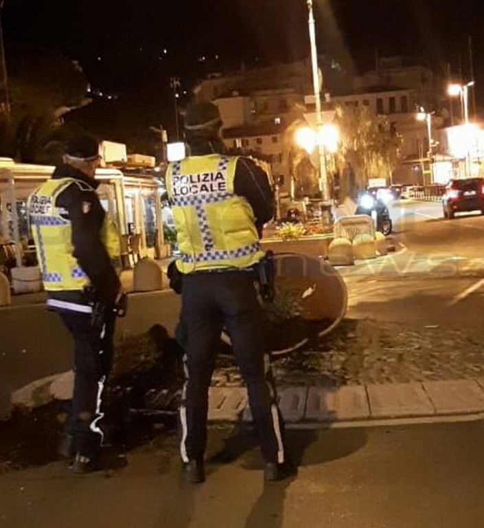 Sanremo: rotonda del porto vecchio semi distrutta da un'auto pirata, sarà inchiodato dalle telecamere (Foto)