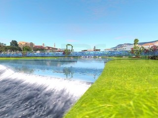Si parla anche di un altro posteggio: “Verrà realizzato nella prima fase operativa all’entrata di Ventimiglia, ai confini del Roya, dov’è già presente un parcheggio all’aperto, che verrà sopraelevato di tre piani, interamente coperti, comprendente 300 posti auto, oltre ai 104 già presenti. Nel lato esterno verso il lago, all’interno della struttura dei parcheggi, verrà realizzato un fabbricato a forma di torre, con ristoranti, rooftop american bar, negozi, tabaccheria, alimentari, vini e liquori, souvenir, uffici amministrativi del lago, due piani di appartamenti panoramici di lusso, uso hotel e foresteria degli artisti vip e la sede dell’associazione Canottaggio di Ventimiglia, che potrà offrire agli associati i propri servizi sul lago”.
