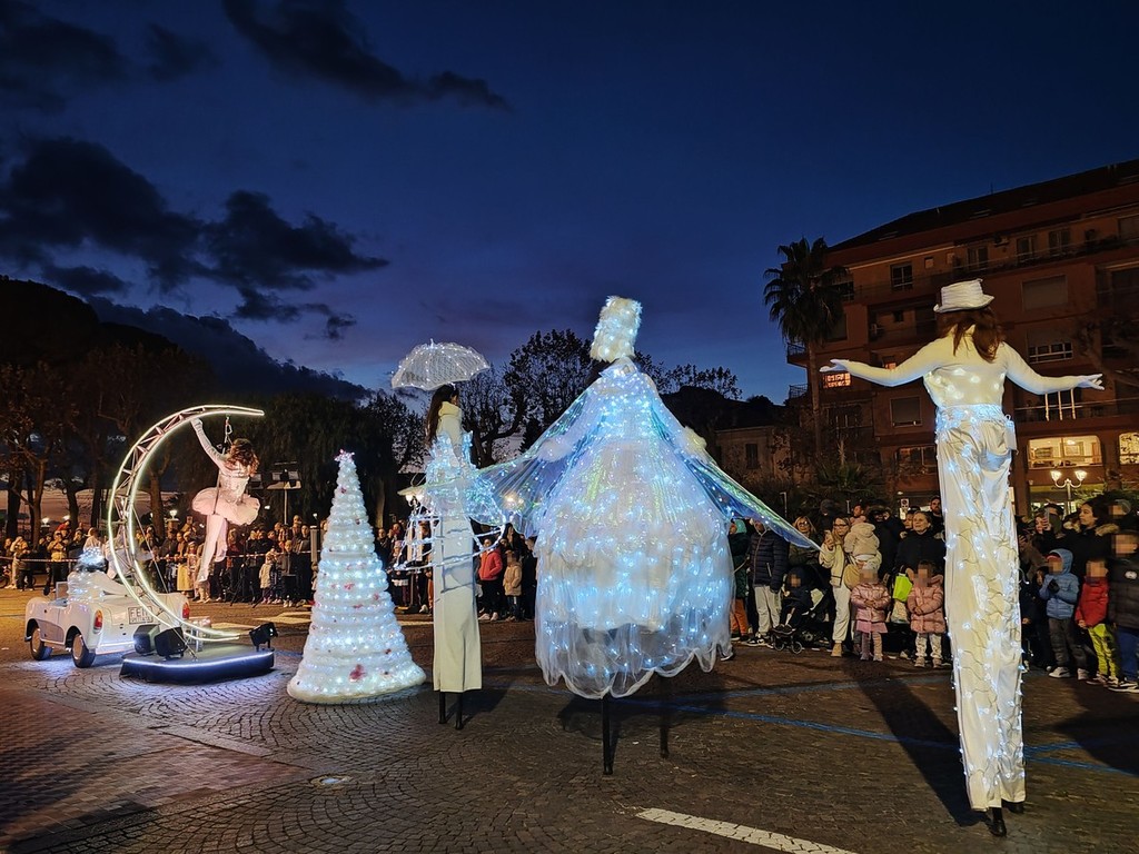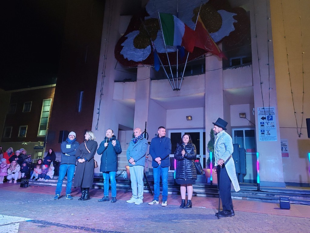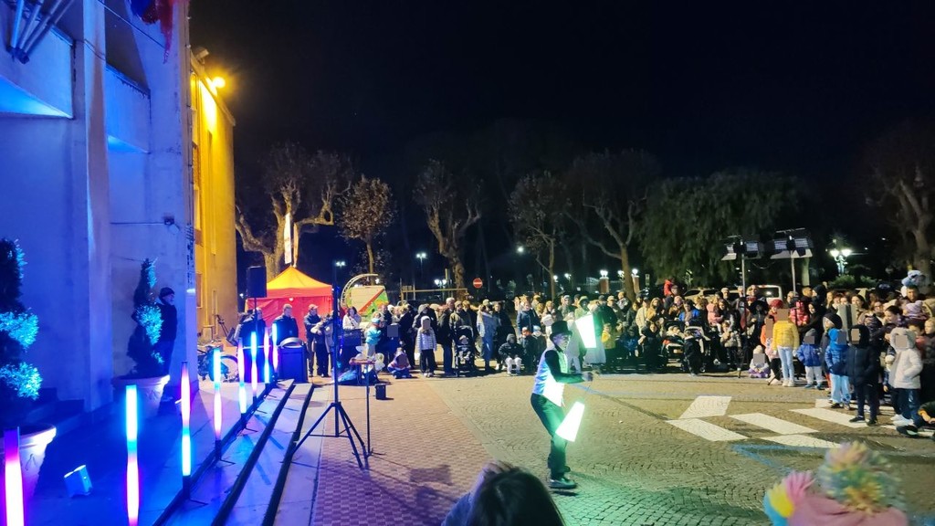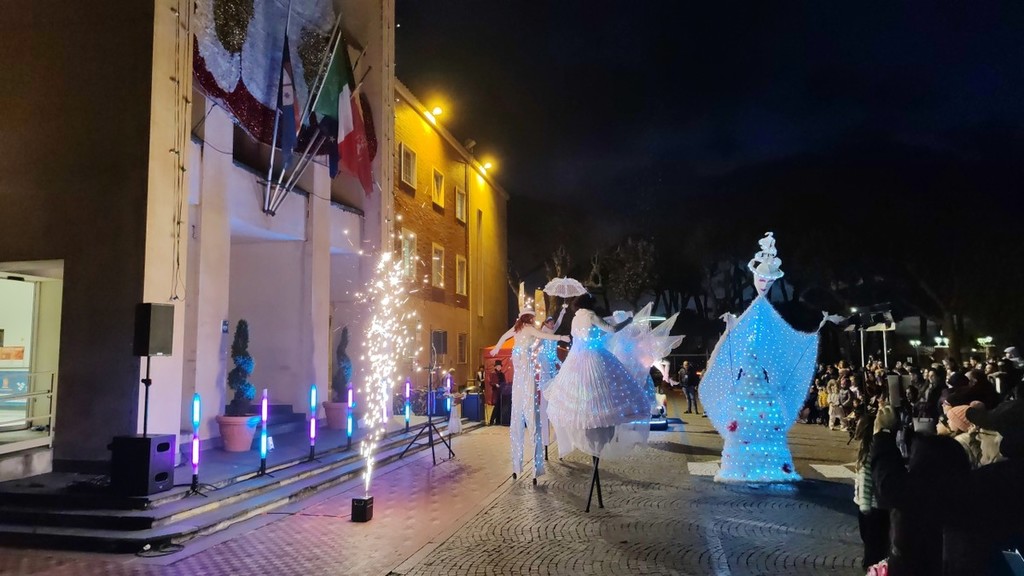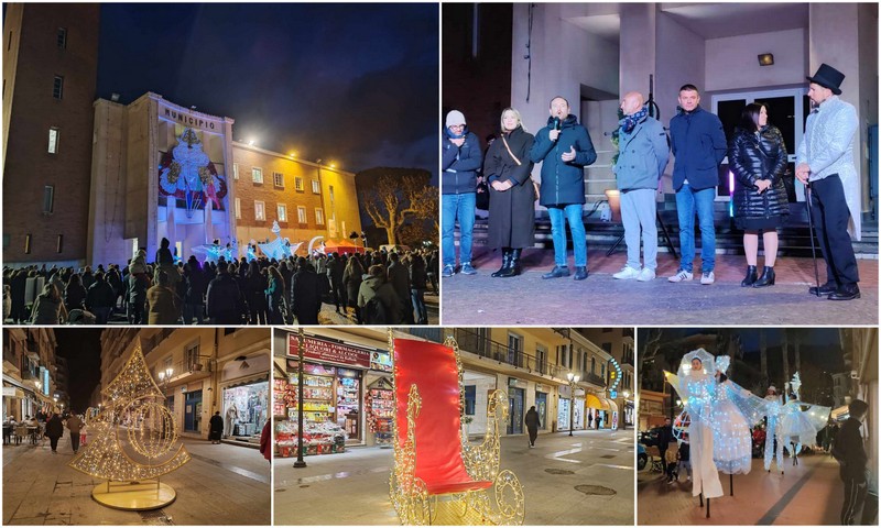 La sfilata “Luci Itineranti” di FEM Spettacoli, scortata dalla polizia locale lungo le vie cittadine, ha dato il via all'evento proposto dall'Amministrazione comunale per far divertire i bambini e le loro famiglie in vista del Natale. In seguito, spettacoli di giocolieri e trampolieri del duo “Squilibrio e Fortunello” hanno stupito e divertito il folto pubblico presente in piazza della Libertà fino all'atteso momento dell’accensione dell'albero e delle luminarie installate in città. Per l'occasione erano presenti il sindaco Flavio Di Muro, gli assessori Serena Calcopietro, Adriano Catalano e Domenico Calimera, i consiglieri comunali Enzo Di Marco e Simone Bertolucci e il consigliere regionale Veronica Russo.