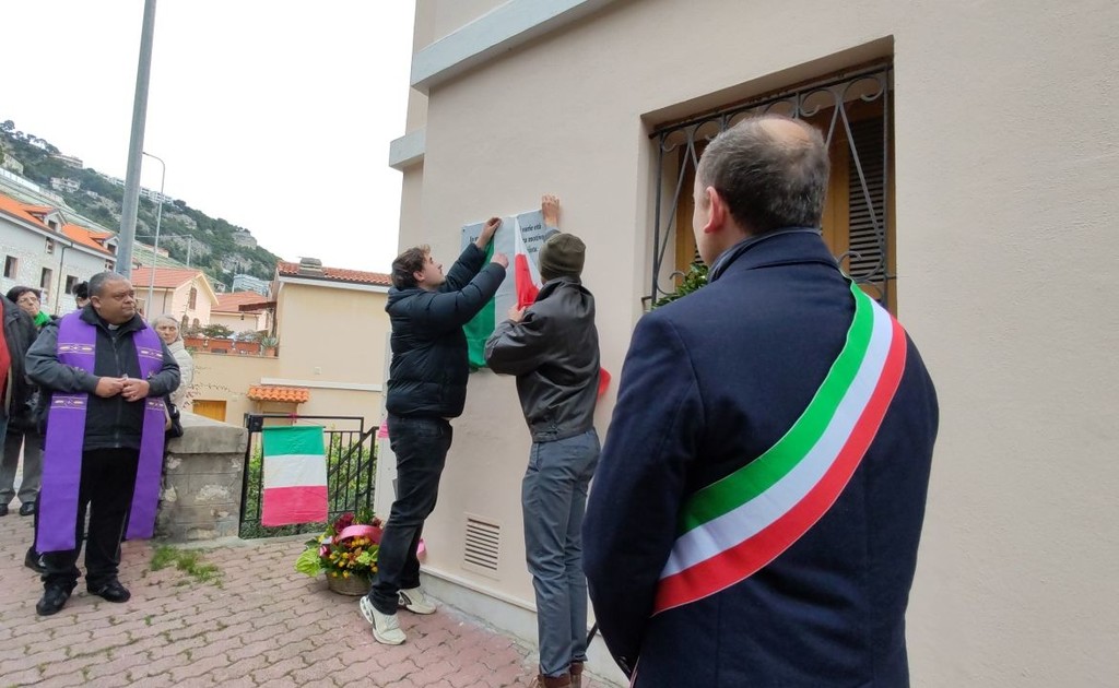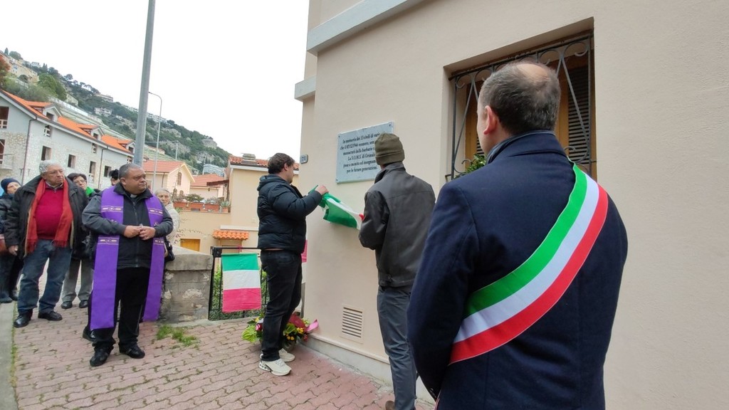 Ventimiglia dedica una lapide in commemorazione dell'eccidio di Grimaldi, avvenuto il 7 dicembre del 1944. E' stata collocata e inaugurata questa mattina sul muro dell'ex albergo 'Al Vittoria', ora complesso residenziale 'Gli Smeraldi', nel punto esatto in cui accadde il tragico evento.