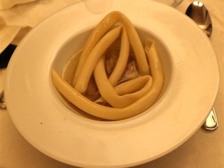Il piatto principale della serata è stato un tributo alla tradizione ligure: i Natalini in brodo (Natalin in to brodo), una preparazione classica che si realizzava durante le festività natalizie. I Natalini simboleggiano un augurio di prosperità e abbondanza, rendendo ogni assaggio un momento di riflessione e gratitudine.