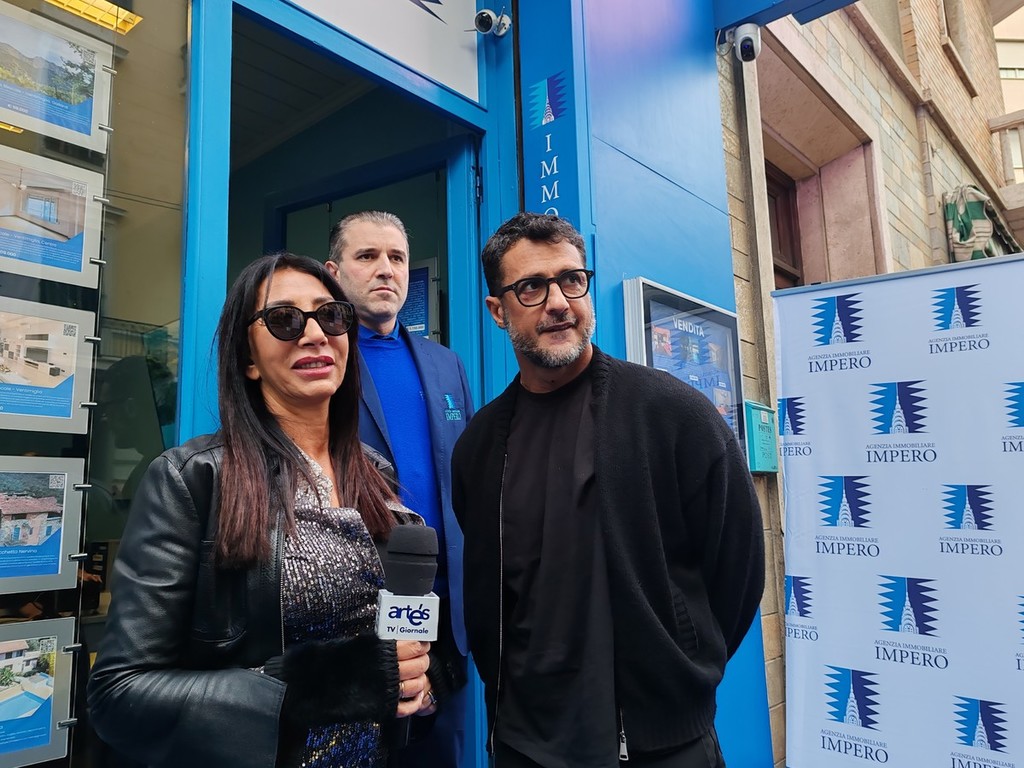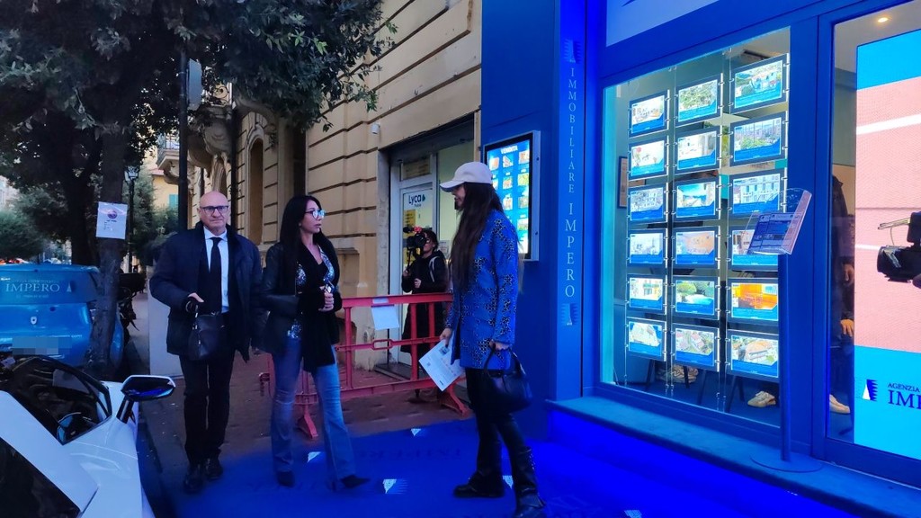 Fabrizio Corona torna a Ventimiglia accompagnato da Nina Morić. Insieme a Rudy Gastaldo, titolare dell'Agenzia Immobiliare Impero, hanno visitato, nel pomeriggio odierno, due attici e un'attività in centro.