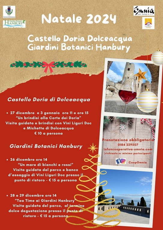 Da non dimenticare infine anche il 25' Concorso ‘Presepi... Sotto le Stelle’ presso l'Oratorio dell'Annunziata (premiazione di tutti i partecipanti il 12 gennaio 2025 alle ore 15). Si, anche quest’anno arriva il Natale e allora non resta che lasciarsi guidare nella Magia di ‘Aspettando il Natale’ tra le bellezze di Bordighera Alta e Borghetto San Nicolò".