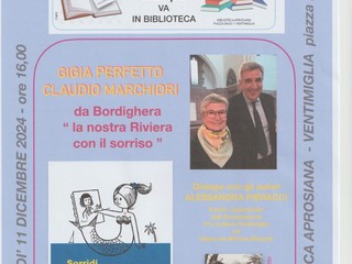 Aneddoti, curiosità e ricordi sul Salone Internazionale dell’Umorismo di Bordighera sono stati raccontati nel secondo appuntamento de "La stampa in Biblioteca", ideato da Miriana Rebaudo e organizzato dall’associazione Pro Cultura Ventimiglia, andato in scena oggi pomeriggio presso la Biblioteca Aprosiana in piazza Bassi 1, accanto alla chiesa di Sant’Agostino. Gigia Perfetto e Claudio Marchiori hanno presentato al pubblico presente il libro “Sorridi sei a Bordighera”.