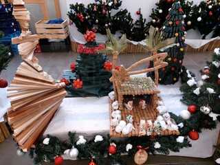 E' un presepe con un doppio significato quello realizzato nel cuore del mercato annonario di Sanremo: da un lato l'aspetto umanitario, con un pensiero angosciato rivolto a tutte le popolazioni attraversate dalle atrocità della guerra, espresso su un fondale bianco con l'elenco dei paesi in cui imperversano conflitti di varia natura e con l'aggiunta di alcune foto; dall'altro la tradizione della Natività interpretata nel segno 'green' tramite il riciclo di materiali, nel caso specifico la capanna e le figure principali realizzati utilizzando tappi di sughero, così come l'albero colorato di verde sullo sfondo, mentre quelli stilizzati di fianco sono composti da scarti della lavorazione del legno.