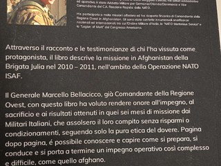 Un'interessante occasione per conoscere e capire come si prepara, si conduce e si porta a termine un impegno operativo così complesso e difficile, come quello afghano attraverso il racconto e le testimonianze di chi l'ha vissuta come protagonista. Il libro, infatti, descrive la missione in Afghanistan della Brigata Julia nel 2010 – 2011, nell'ambito della Operazione NATO ISAF dopo gli attentati dell'11 settembre 2001 per sconfiggere il terrorismo proveniente da questo paese. Il generale Marcello Bellacicco, già comandante della Regione Ovest, con questo libro ha voluto rendere onore all'impegno, al sacrificio e ai risultati ottenuti in quei sei mesi di missione dai militari italiani, che assolsero il loro compito senza risparmi o condizionamenti, seguendo solo la pura etica del dovere. "I presenti i sala hanno ascoltato con attenzione e interesse le parole di Bellacicco che ringraziamo per essere venuto a Vallecrosia" - fa sapere il capogruppo degli alpini di Vallecrosia Giuseppe Turone che ha proposto e organizzato l'evento.