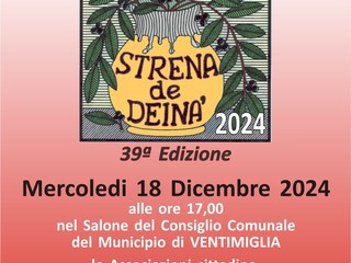 Tradizione rispettata. Si è svolta nel pomeriggio odierno alla presenza di autorità civili, religiose e militari la cerimonia dello scambio degli auguri tra le associazioni cittadine e l'Amministrazione comunale nell’aula consiliare del comune di Ventimiglia: la trentanovesima edizione della “Strena de Deinà”.