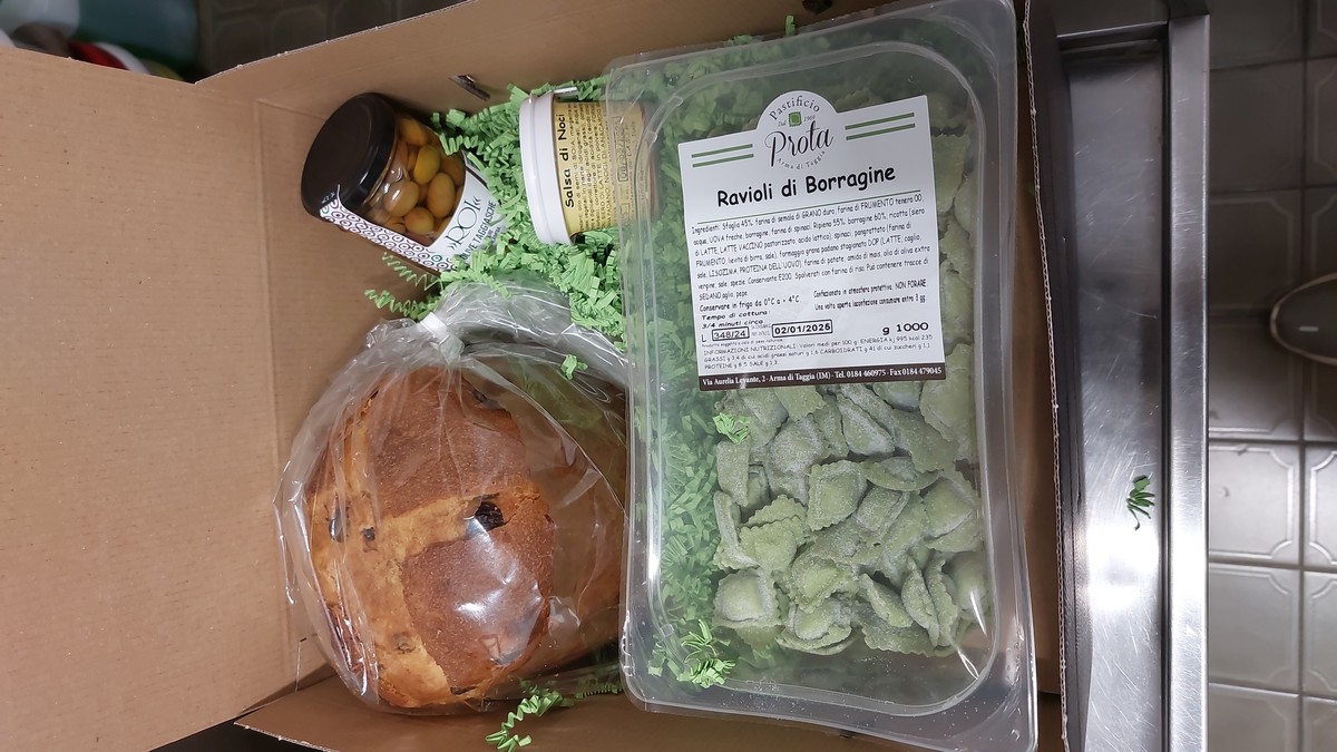 Inoltre, potrai creare una box natalizia unica e personalizzata, con i migliori prodotti della nostra terra. Dalla pasta fresca fatta a mano secca ai sughi artigianali, dall'olio taggiasco alle olive, alle confetture artigianali fino ai dolci tipici liguri: un viaggio nel gusto per tutta la famiglia. Vieni a scoprire le proposte in negozio!