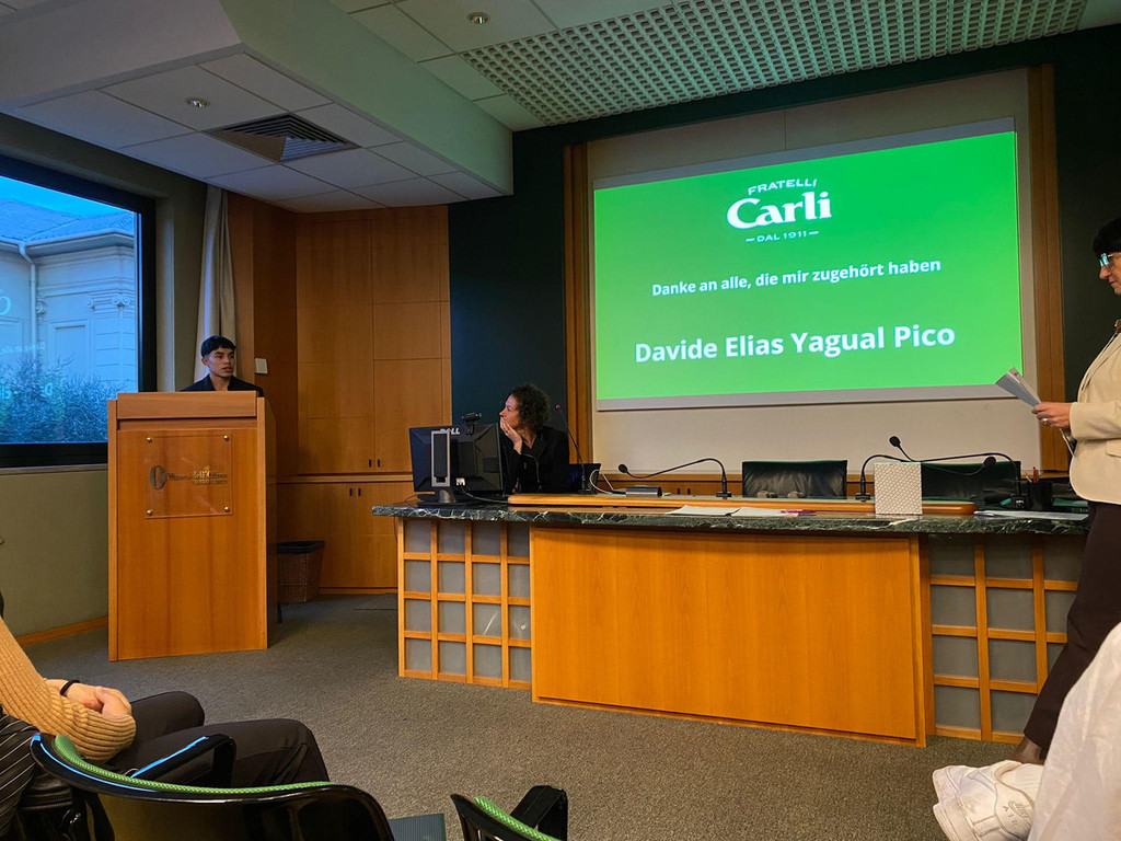 Successivamente i ragazzi sono stati accolti nella Sala delle Conferenze dalla dottoressa Claudia Schmidt, responsabile dell’ufficio estero, e dal dottor Massimo Belmonte, dirigente presso Fratelli Carli. Sono stati poi sottoposti a test di selezione in lingua tedesca, che hanno messo alla prova le loro abilità di memoria, ascolto e comprensione e, infine, hanno dovuto presentare alcuni prodotti tipici dell’azienda, utilizzando proprio la lingua tedesca.