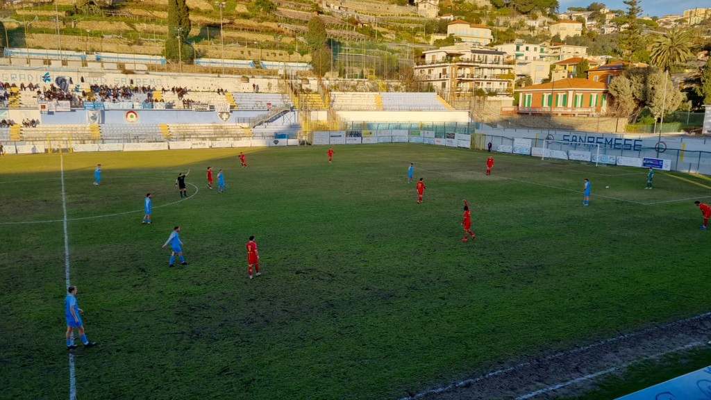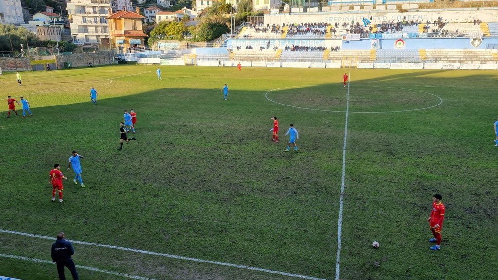 90' saranno 5 i minuti di recupero. Sanremese in avanti