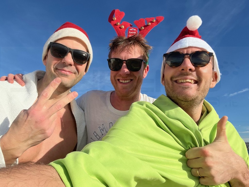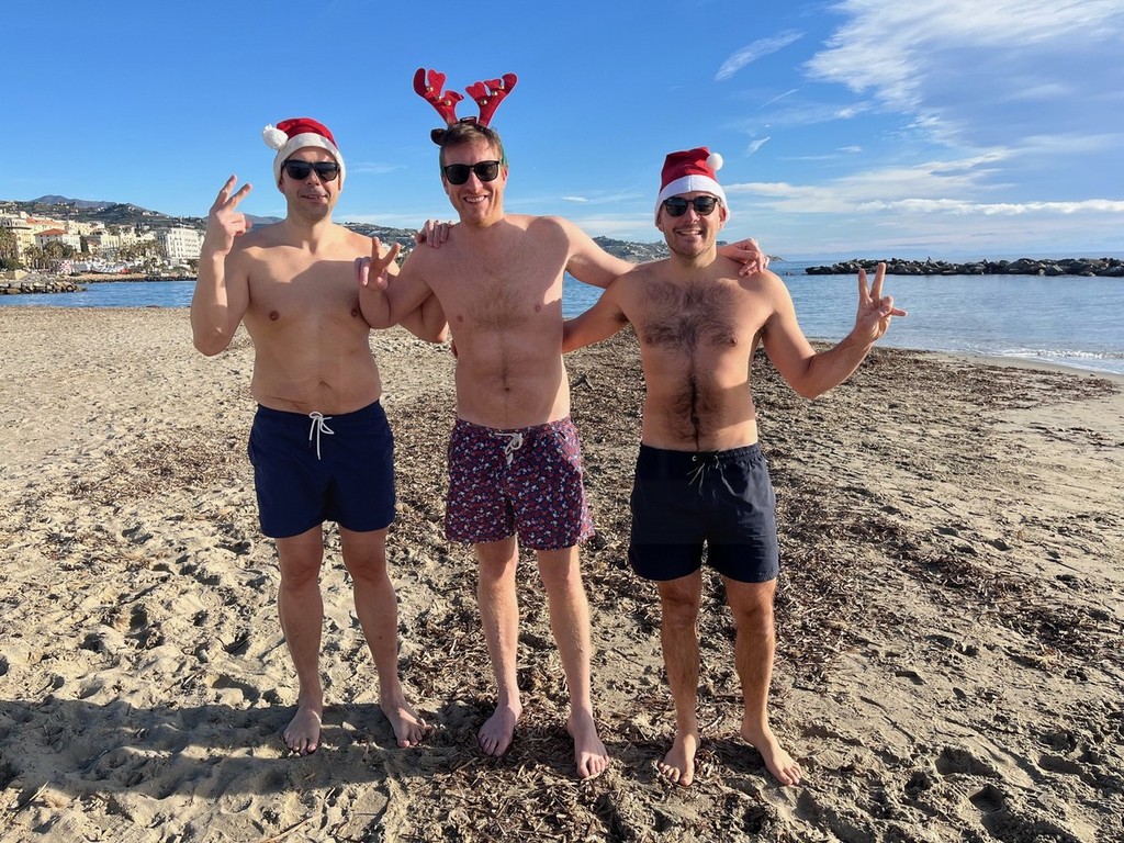 Tre ‘amici di Sanremo’ che amano il mare della nostra splendida città, tanto da fare il bagno tutto l’anno, hanno voluto celebrare il Natale con un tuffo speciale e ci hanno scritto (inviandoci alcune foto) per condividere con i nostri lettori, il loro momento unico dal sole della città dei fiori.
