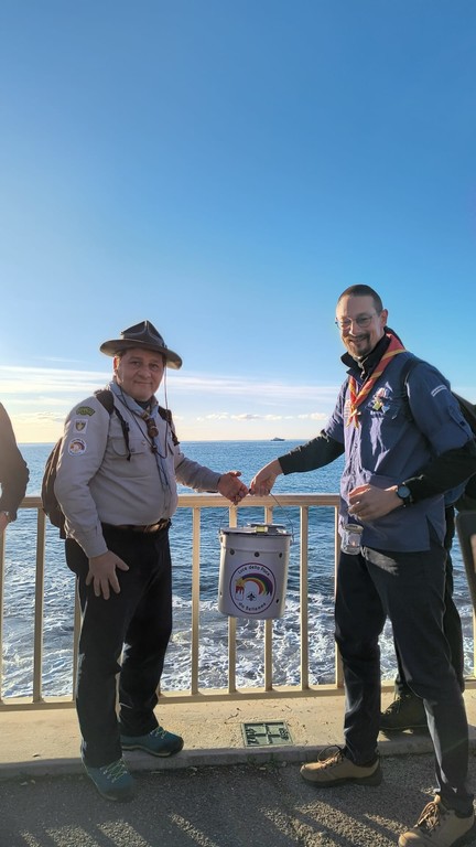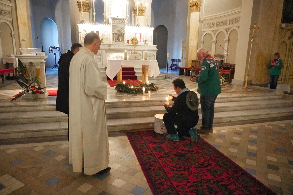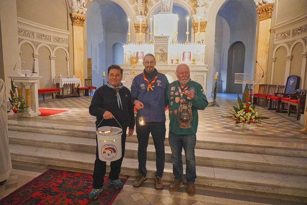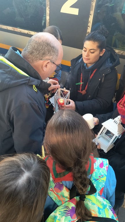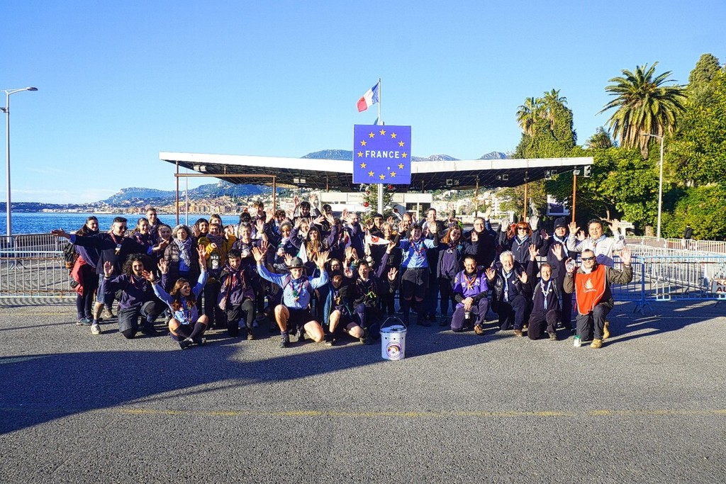 Dall'Englise di Sacré Coeur a Mentone il gruppo scout di Menton de scouts et Guides de France ha portato la 'Luce della Pace', a piedi, attraversando la frontiera italo-francese di ponte San Ludovico, fino alla parrocchia di Sant'Agostino, a Ventimiglia, dove è stata accolta da varie autorità religiose, dai fedeli e dai cittadini ed è stata distribuita ai presenti che volevano riceverla.