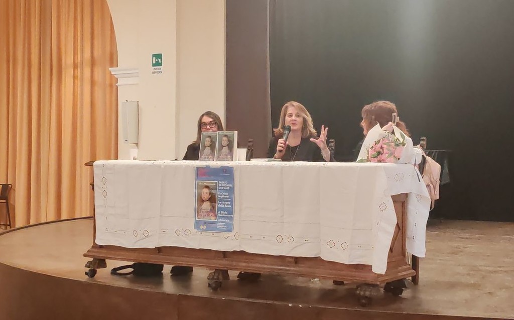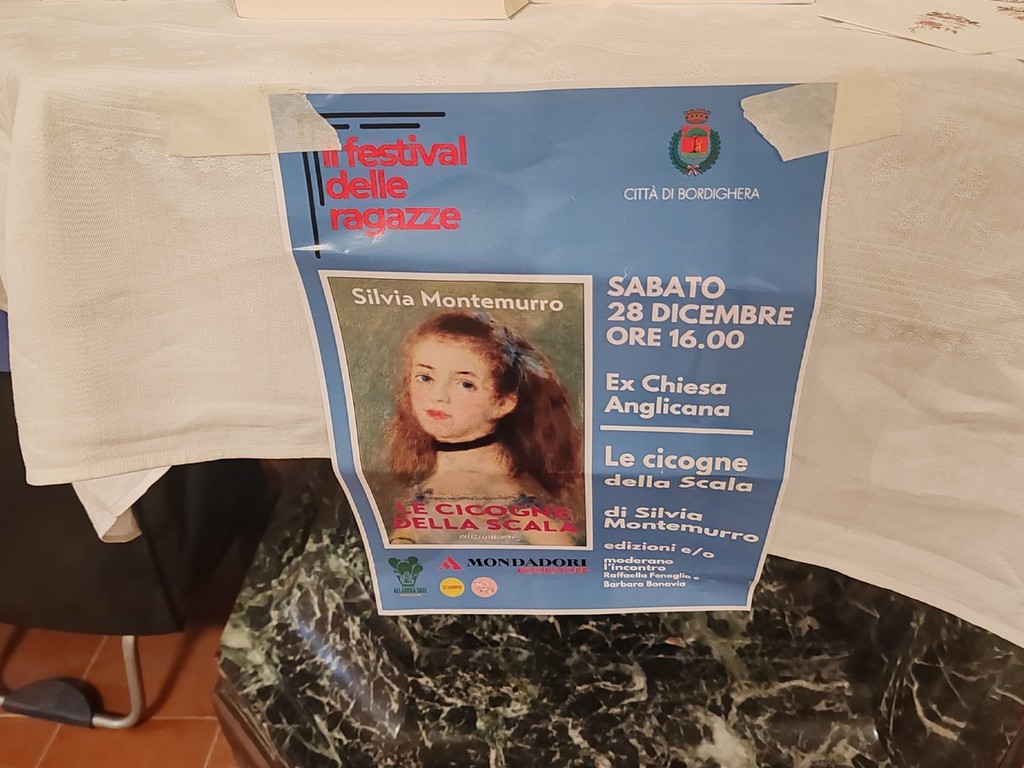 Silvia Montemurro si racconta al Festival delle ragazze a Bordighera. Un folto pubblico, presente oggi pomeriggio all'ex chiesa Anglicana, ha ascoltato con interesse la presentazione del libro "Le cicogne della scala", e il dialogo-intervista tra l’autrice e Raffaella Fenoglio allietato dalle interpretazioni e letture a cura di Barbara Bonavia e dall’accompagnamento musicale del maestro Marco Balbo.