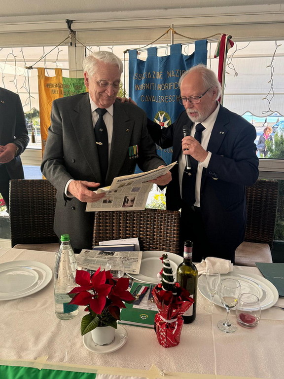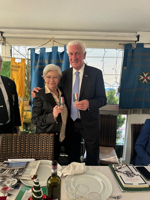 Sabato scorso, al ristorante Marinella di Sanremo, si è svolta la tradizionale festa natalizia dei Cavalieri della Repubblica soci dell’ANIOC (Associazione Nazionale Insigniti Onorificenze Cavalleresche) e dei Maestri del Lavoro. L’evento, organizzato dal Delegato Provinciale di Imperia Cav. Uff. Roberto Pecchinino, in collaborazione con il Console Provinciale dei Maestri del Lavoro Cav. Uff. Salvatore Napoli, ha rappresentato un importante momento di condivisione e celebrazione dei valori che accomunano le due associazioni.