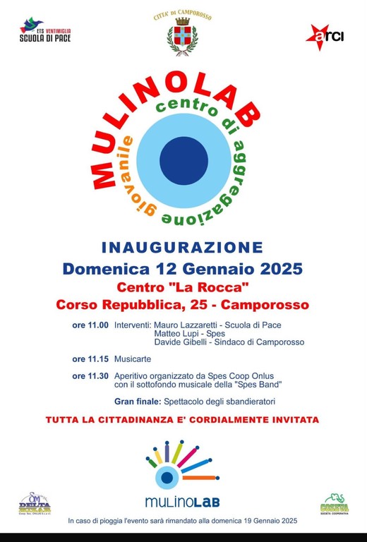 Un luogo rivolto ai giovani. Camporosso, domenica 12 gennaio alle 11, inaugurerà il nuovo centro sociale “La Rocca”, in gestione alla Scuola di Pace di Ventimiglia.