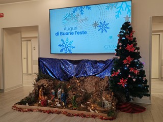 Un presepe e un albero di Natale all'ingresso dell'ospedale Saint Charles a Bordighera per augurare a tutti coloro che entrano nella struttura ospedaliera 'buone feste'.