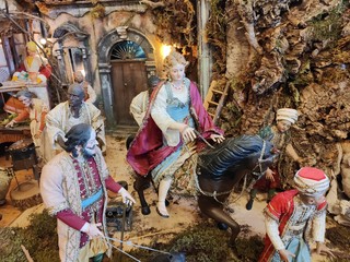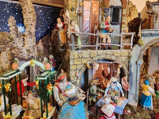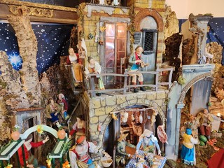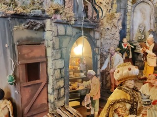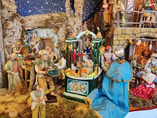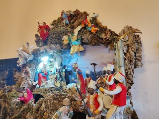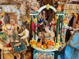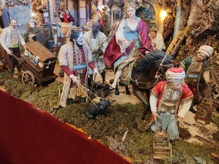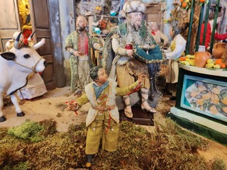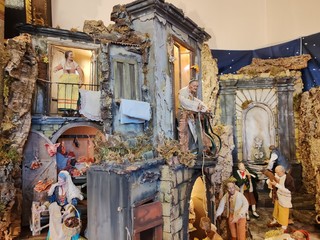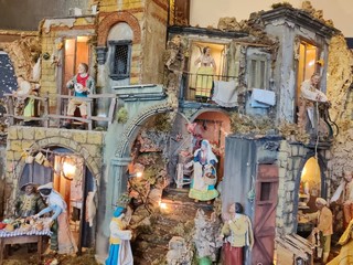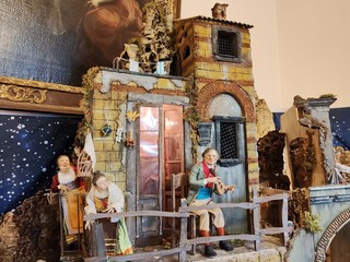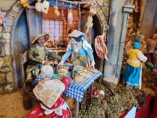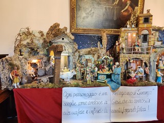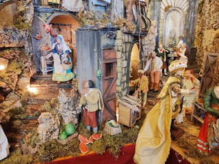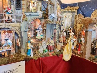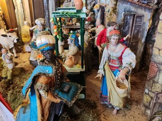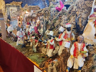 Tante statuine realistiche, con un nome e un significato ben preciso, creano un grande presepe realizzato in quasi tre mesi da Francesco Sacco, un napoletano, che affascina, ogni volta, i visitatori. "Nel presepe napoletano in stile '700, voluto da Carlo III di Borbone su suggerimento del suo padre spirituale, padre Rocco, un gesuita, sono state inserite scene di vita quotidiana dei 365 giorni dell'anno. Vi sono, perciò, vari mestieri, arti e attività lavorative che rappresentano i principali commerci che si svolgono lungo tutto l'anno, alcuni ormai persi, come personificazioni dei mesi. Era anche un modo per fare catechesi ed evangelizzare nel '700" - spiega Francesco Sacco - "Gennaio, il primo mese dell'anno, è rappresentato dal macellaio; febbraio dal salumiere; marzo e aprile, che si avvicinavano alla Pasqua, erano rappresentati dal pollivendolo e dal venditore di uova, una donna, Carmela che aveva un paniere in testa, che rappresenta anche la Pasqua e quindi si incammina verso la Natività; maggio era raffigurato da una coppia di sposi a braccetto, per indicare che era il mese propizio per il matrimonio, con un cesto di ciliegie in mano; giugno dal panettiere; luglio dall'acquafrescaio, il venditore di limonate e bevande fresche; agosto dal venditore di cocomeri; settembre dalla donna con i fichi; ottobre dalla donna con le caldarroste; novembre dal ciccibacco sulla botte e dicembre dal pescivendolo".