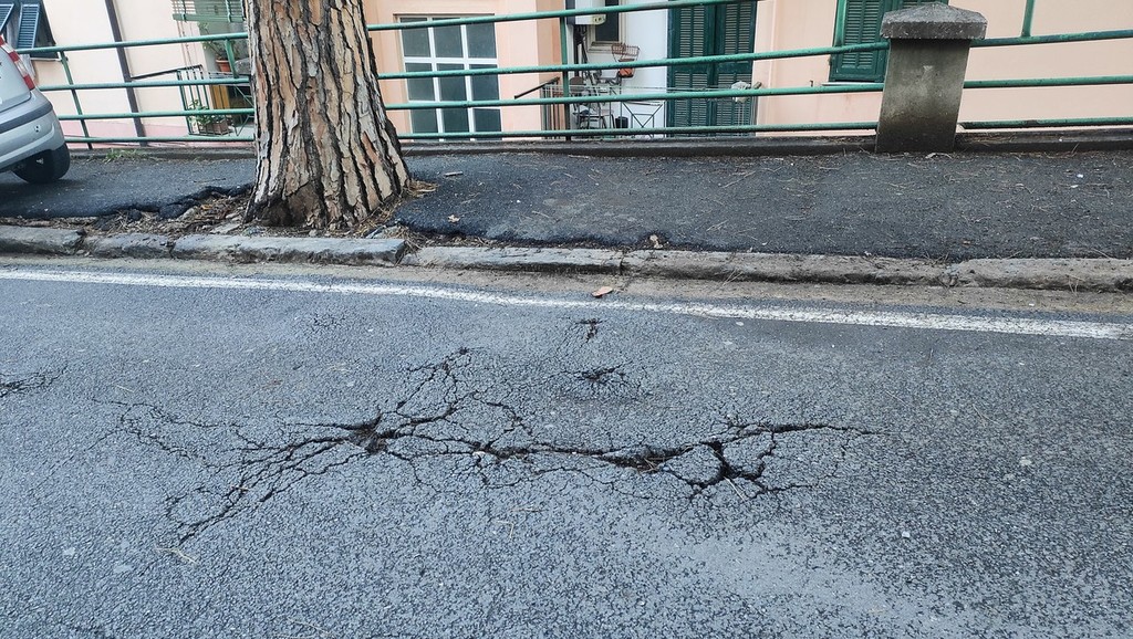 Sanremo: "Radici nell'asfalto e scolo fognario inadeguato", residenti di via Margotti protestano per lo stato della strada (Foto)