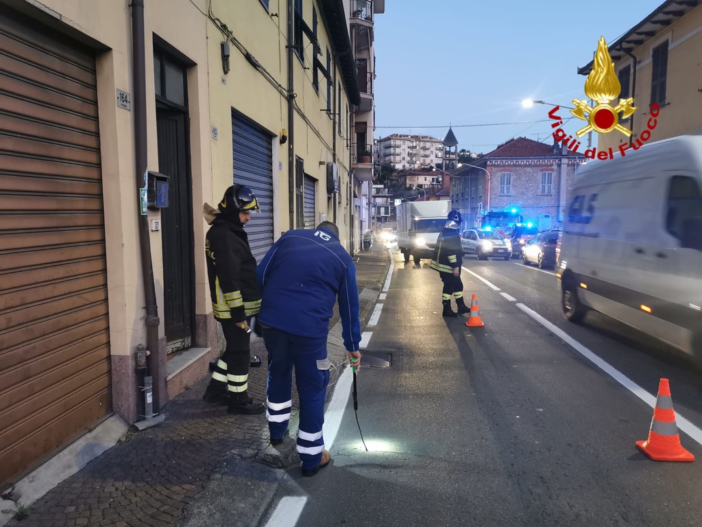 Strata Statale 28 del Colle di Nava momentaneamente chiusa, nella zona di via Nazionale ad Imperia all'altezza del civico 162 per una fuga di gas, che sembra provenire da un cedimento dell'asfalto, quindi dalla linea principale.