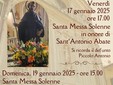 Il 17 gennaio alle 17 verrà celebrata la santa messa solenne in onore di Sant'Antonio Abate. Per l'occasione verrà ricordato il defunto Antonio Piccolo.