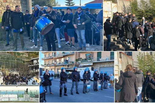 Sanremese-Imperia, tifosi neroazzurri scortati al Comunale: 130 ultras in arrivo dal Capoluogo (Foto e video)
