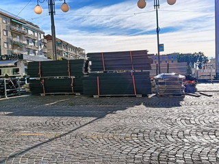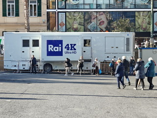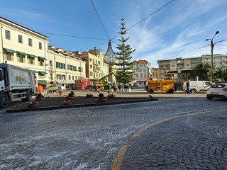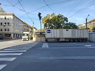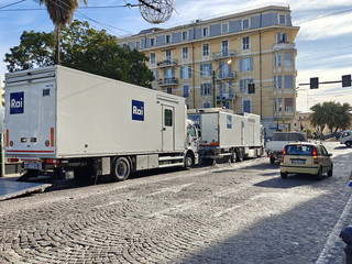 Con la chiusura totale della piazza (compreso il solettone) e la rimozione di tutti i de hors, gli operai ed i tecnici di Rai Pubblicità hanno iniziato a scaricare il materiale che servirà per l’allestimento del palco e delle infrastrutture che accoglieranno gli addetti ai lavori per la kermesse canora matuziana.Come evidenziato già ieri, in relazione all’ordinanza emanata lunedì scorso dal comune, solo i pedoni possono transitare da piazza Colombo ed esclusivamente sul marciapiede lato monte della stessa. Il resto della piazza è infatti off limits e, pian piano prenderà forma, anche quest’anno il festival ‘diffuso’.