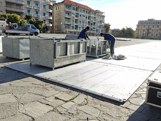 E’ ancora da liberare il parcheggio sotterraneo del deposito Rt di piazza Colombo che, per sostenere il peso del palco e delle diverse infrastrutture che saranno montate sul solettone. I lavori, con l’installazione della struttura di ‘puntello’, inizieranno nelle prossime ore quando saranno spostati i diversi bus parcheggiati all’interno.
